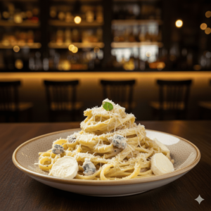 Tagliatelles, crème, bleu, mozzarella, chèvre, parmesan